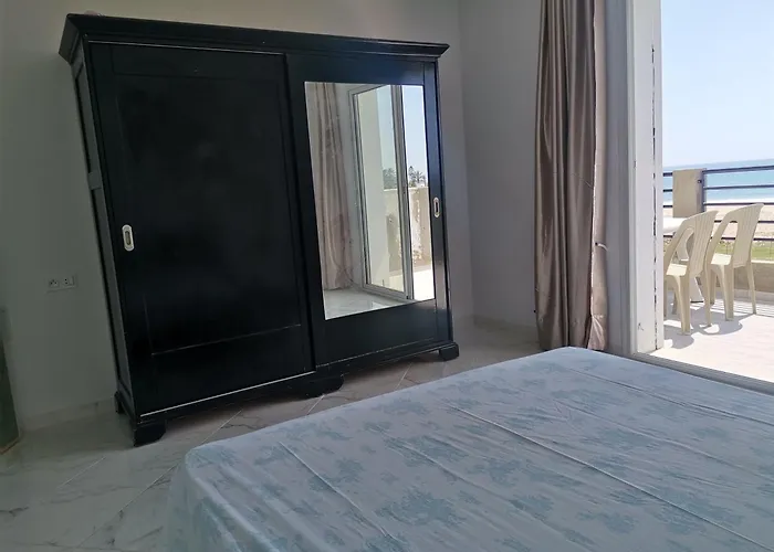 Rare S2 En Front De Mer Maamoura Beach apartment opens onto a terrace.